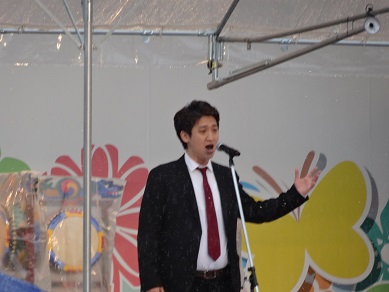 あいにくの雨でしたが、ステージ前に詰めかけた観衆を魅了しました。 |
